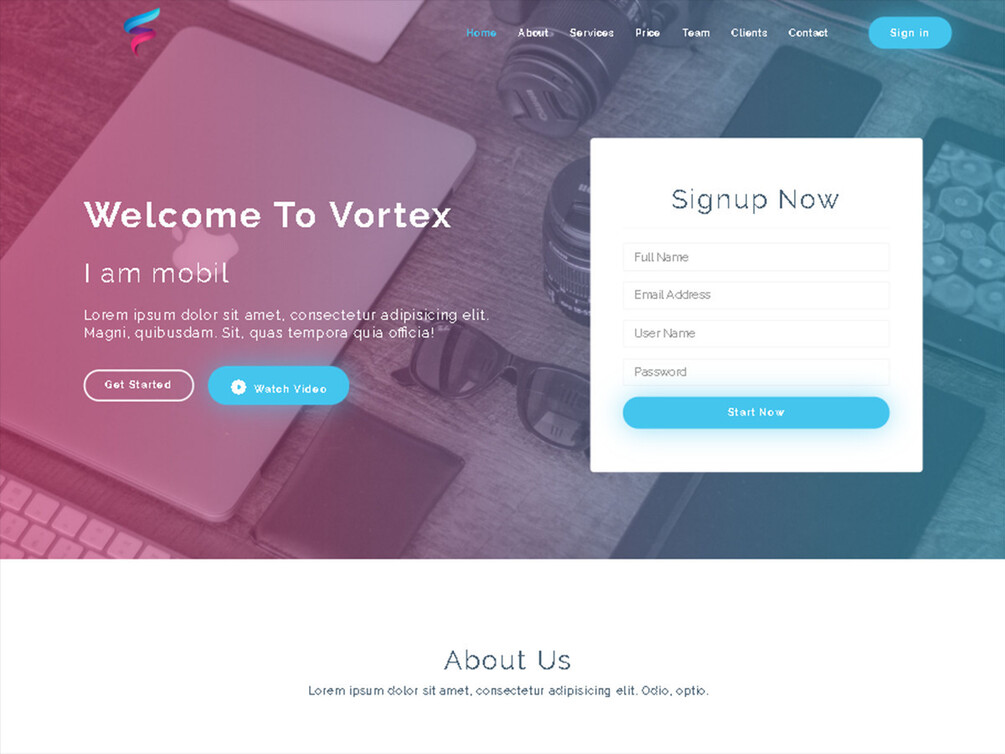 Vortex is suitable for presenting services or products of startup. It is responsive and built with HTML5, CSS3 and Bootstrap.